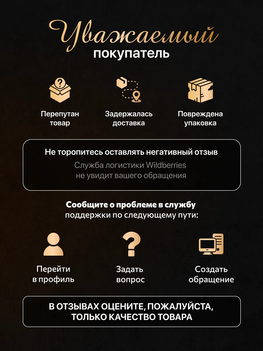 Мы всегда проверяем товар перед отправкой и гарантируем 100% качество.